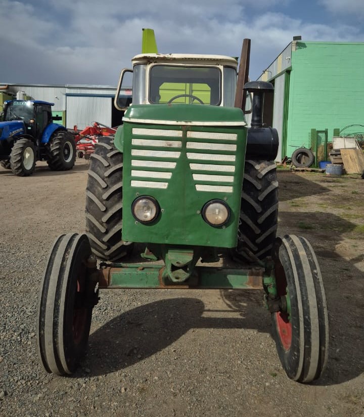 En el estado en que se encuentra, modelo A85, 4 cilindros, embrague simple, alta - baja, caja de quinta con equipo hidráulico, 4 salidas, vigía, cabina "Rumifer", cubiertas en buen estado (se aclara que a veces salta "alta")