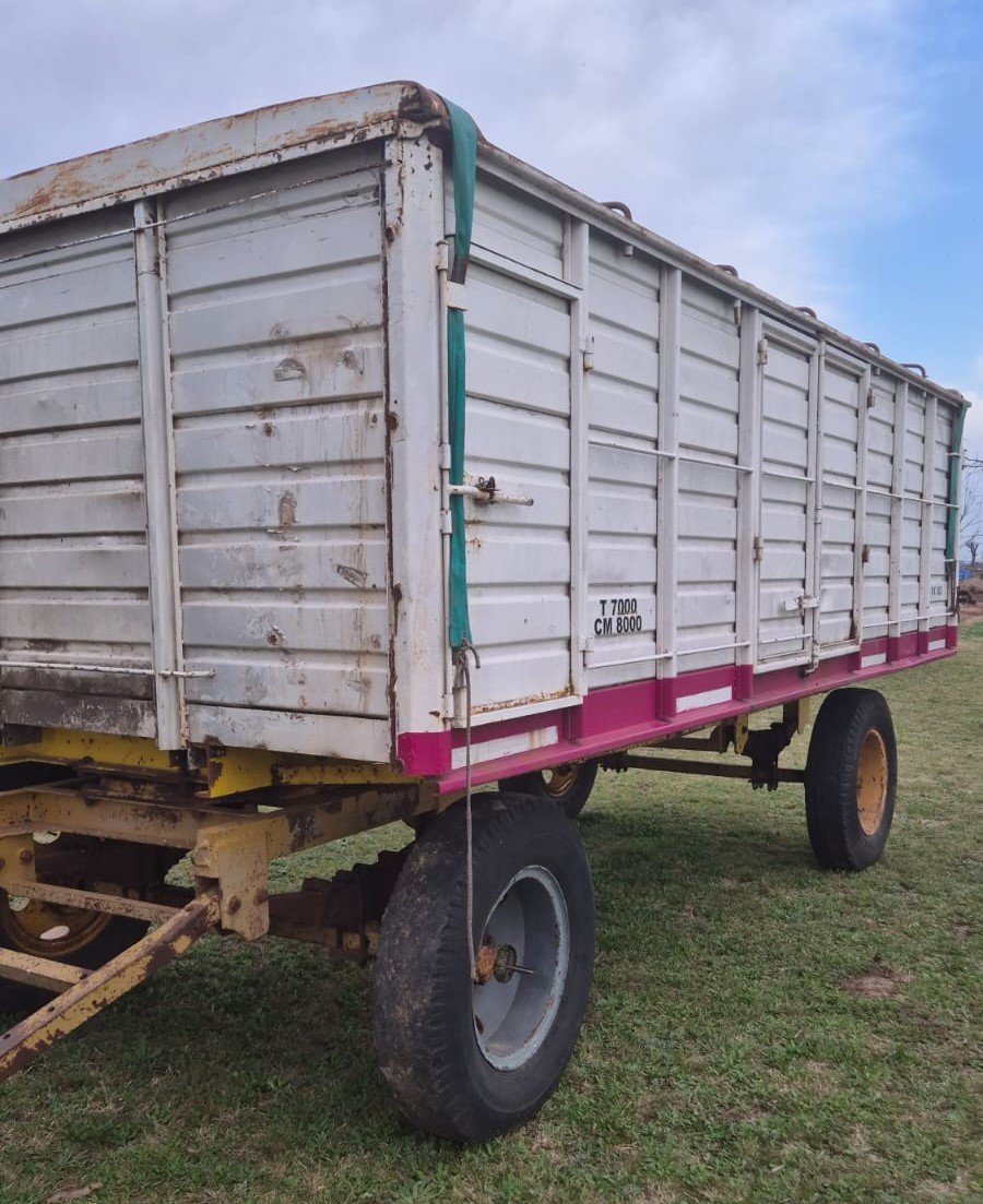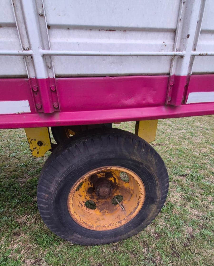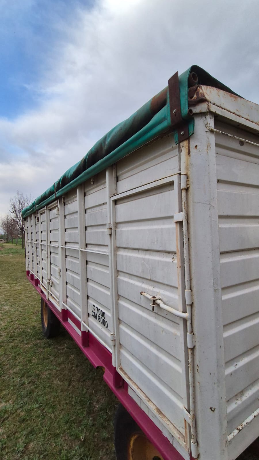 En el estado en que se encuentra, de dos ejes, capacidad 8000TT, 5m x 2,5m, ruedas simples, con destape rápido, piso de chapa, sin luces y sin boquillas, color blanco