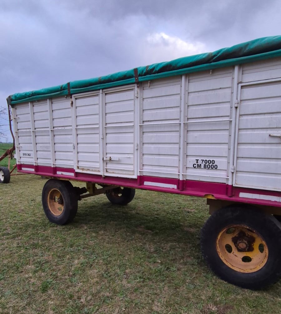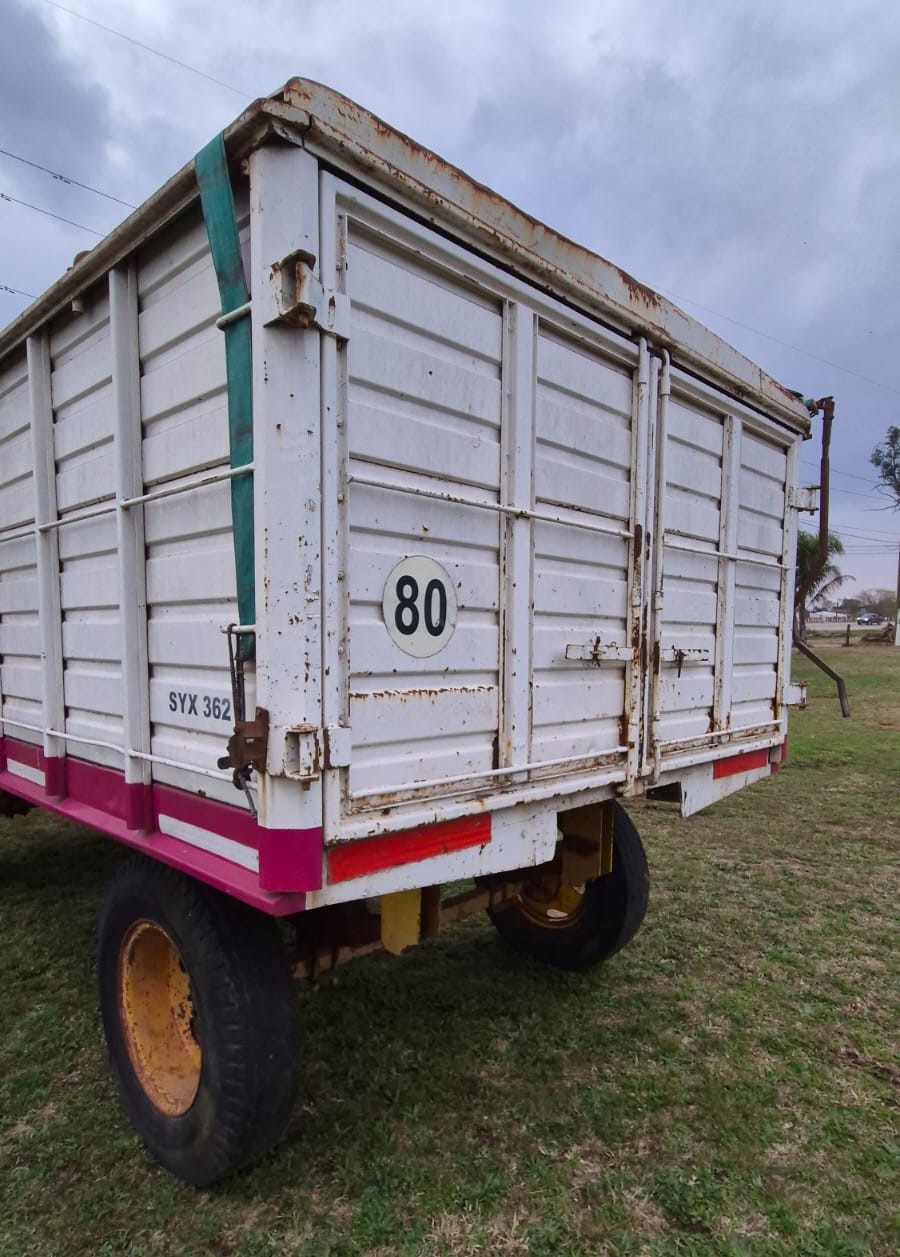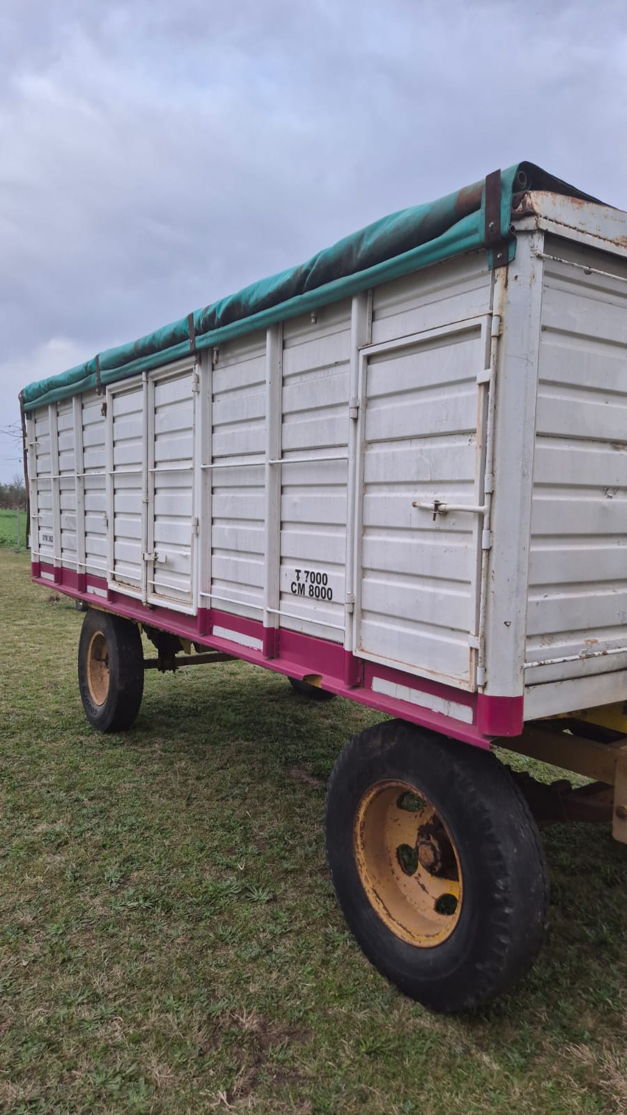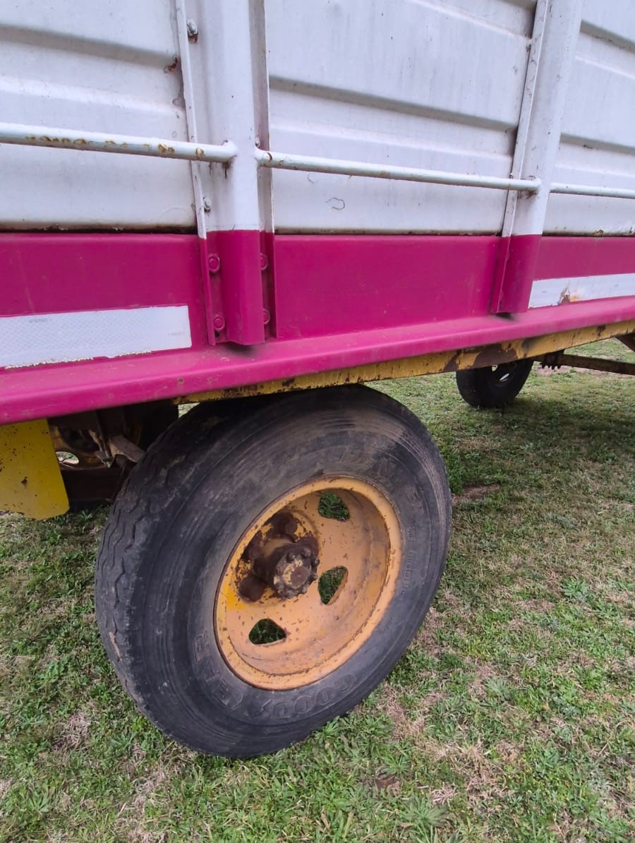 En el estado en que se encuentra, de dos ejes, capacidad 8000TT, 5m x 2,5m, ruedas simples, con destape rápido, piso de chapa, sin luces y sin boquillas, color blanco