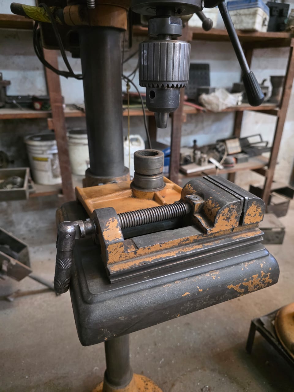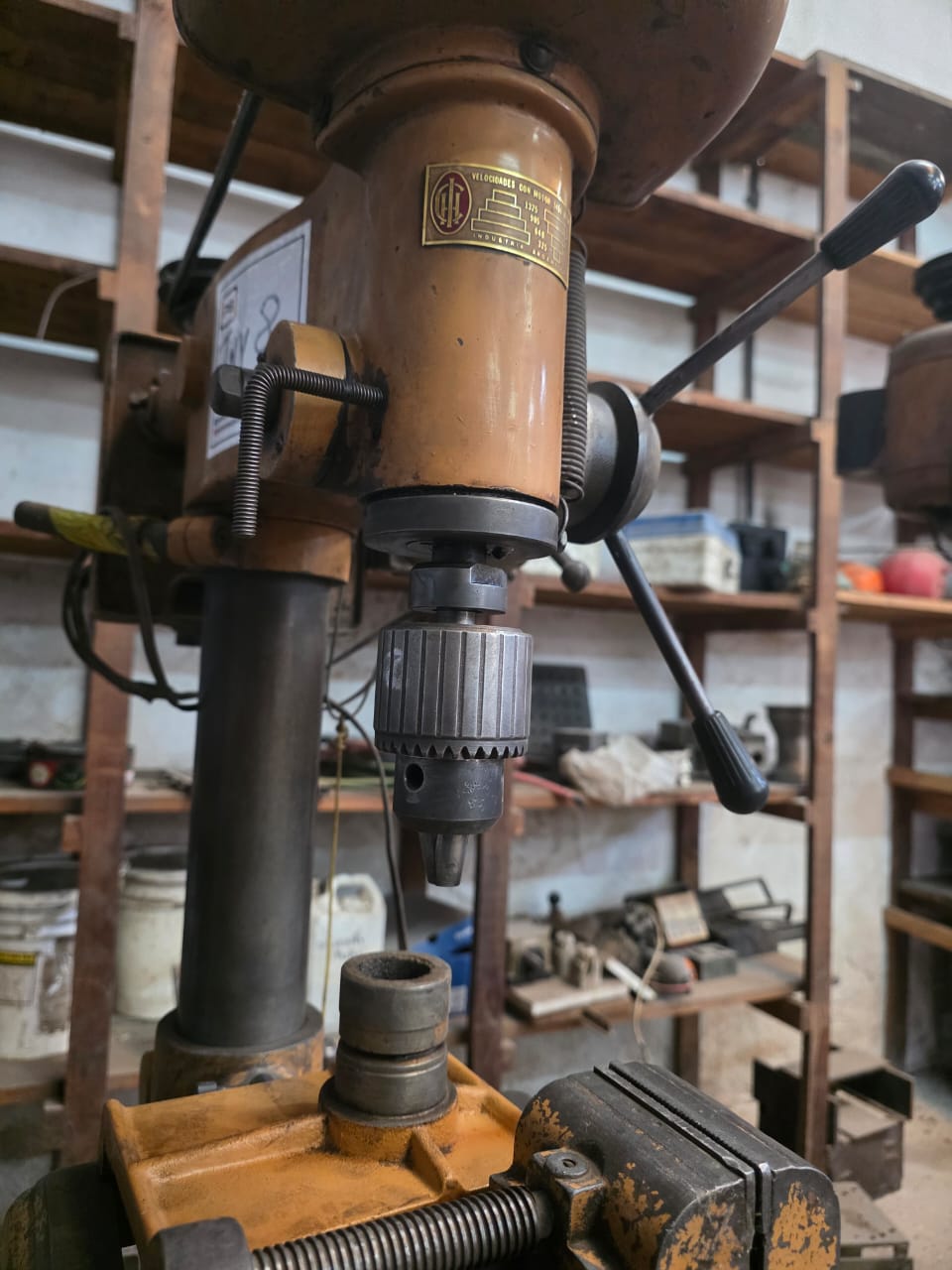 Perforadora de columna monofásica, marca "Casagrande Hnos", con morsa, para 16mm diámetro de perforado, con espiga. Usada en el estado en que se encuentra.