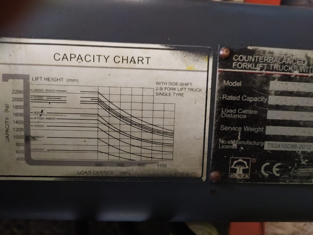 En el estado en que se encuentra, año 2010, motor Renault 12 reparado con conjunto Renault 18, torre triple, levanta hasta 4,50 metros aproximadamente, capacidad de carga 2500kg