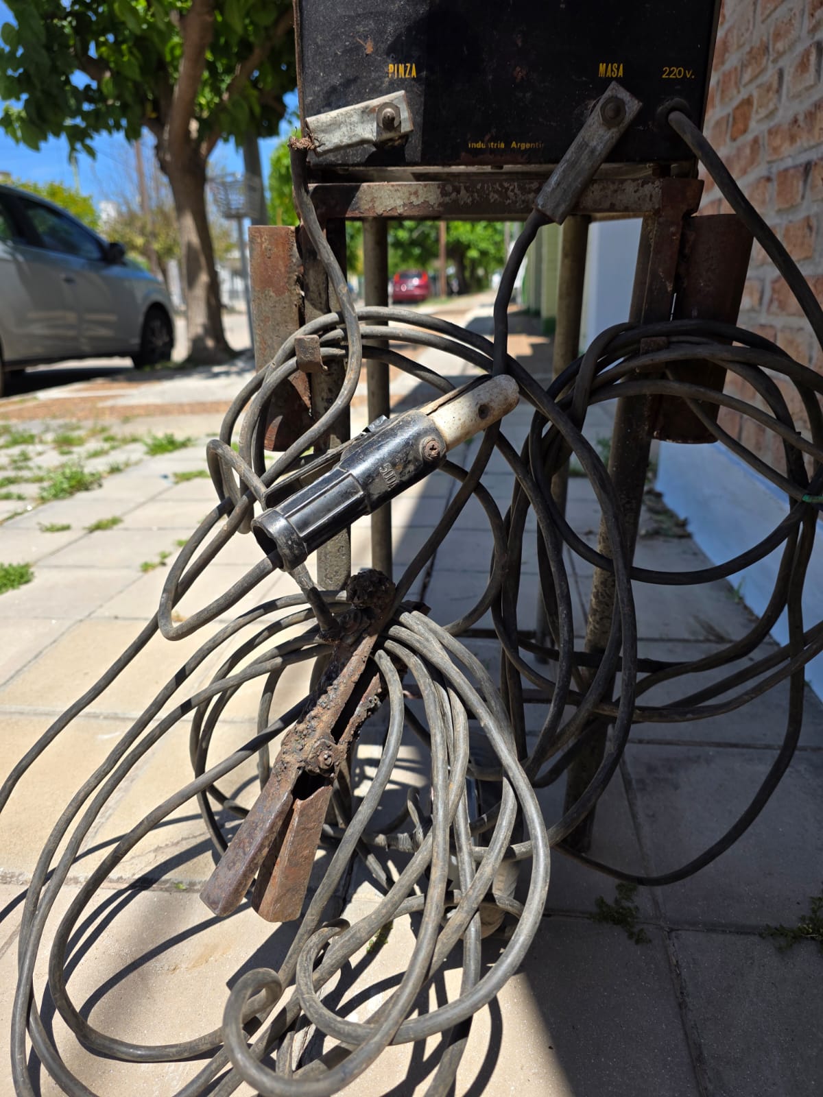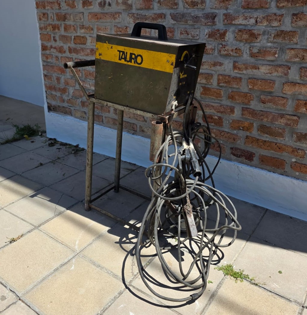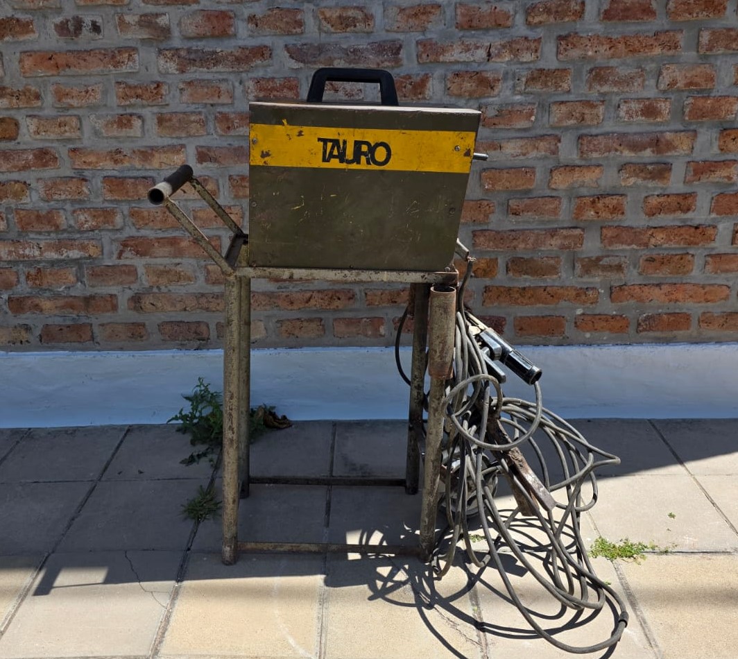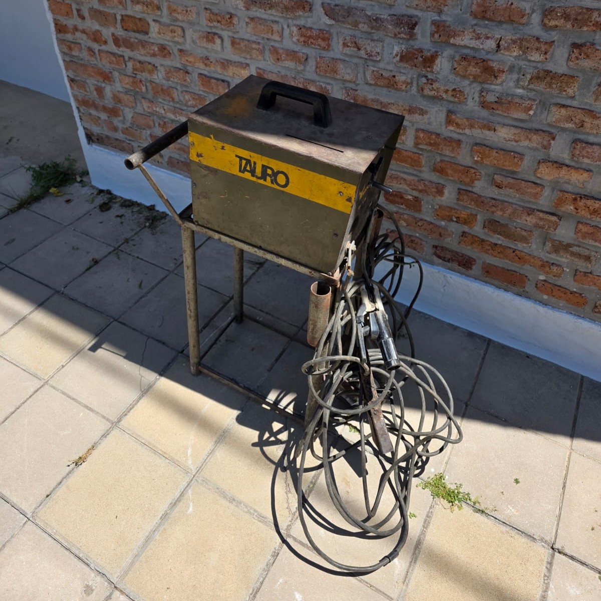 Soldadora eléctrica marca "Tauro", de 150 amperios con carrito y pinzas.