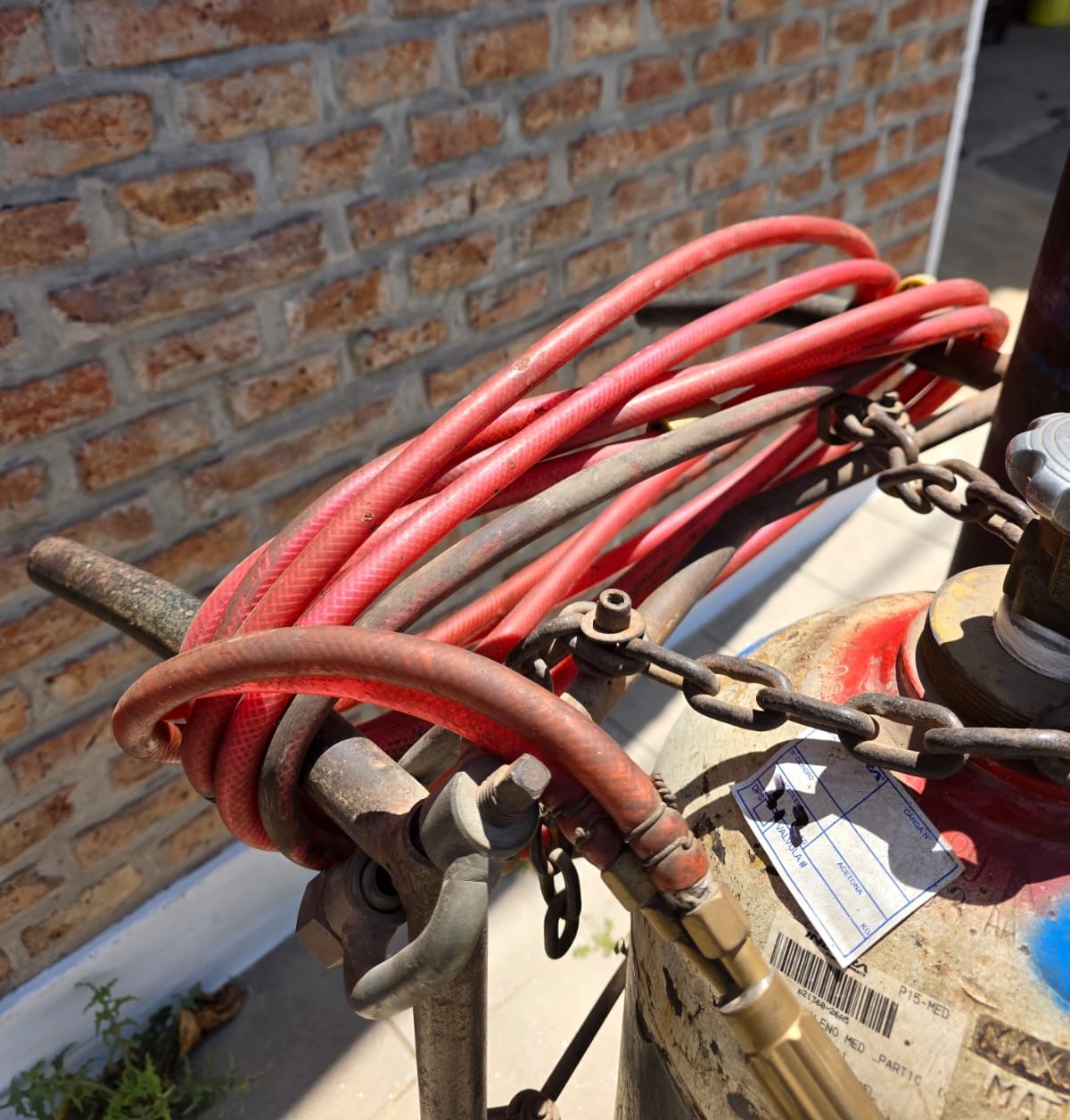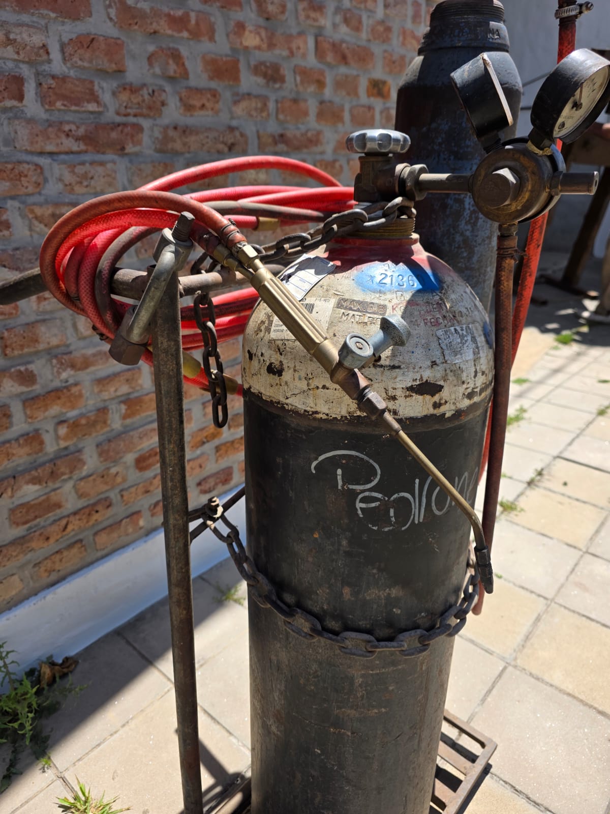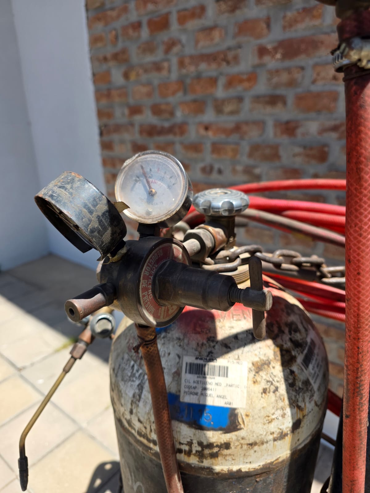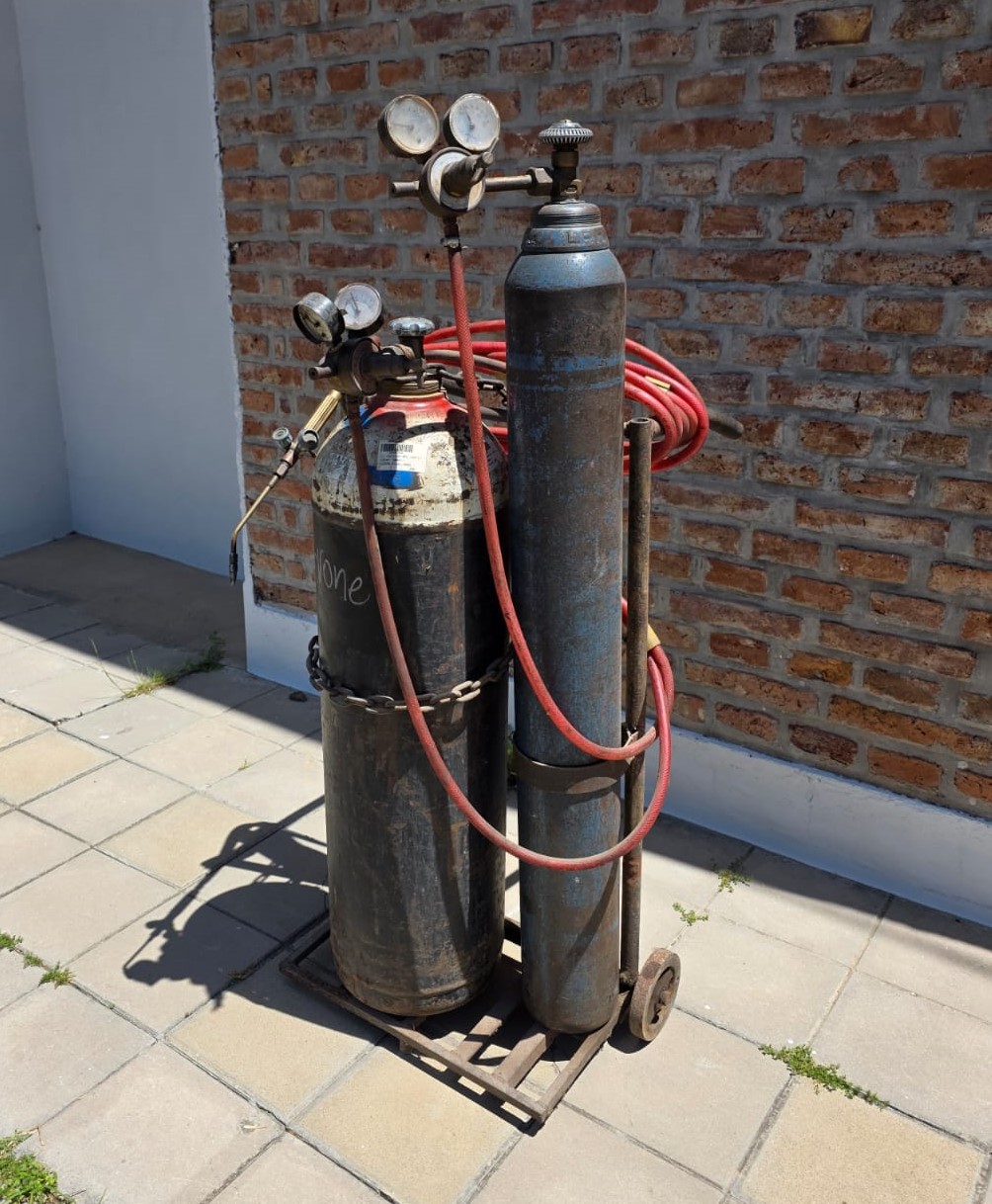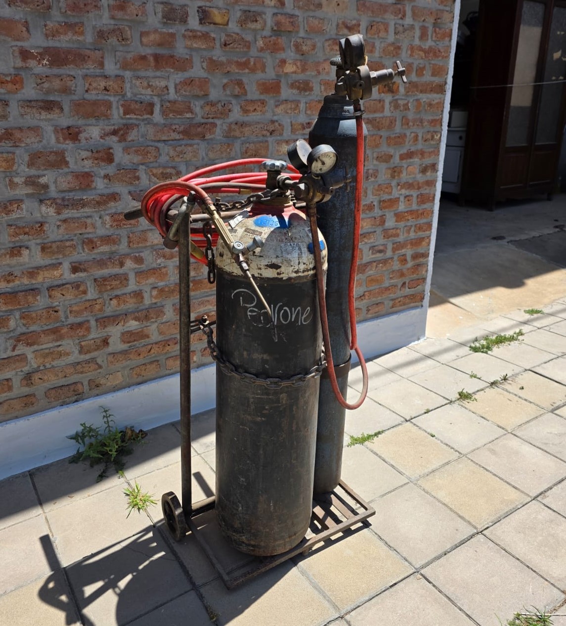 Equipo de autógena compuesto por un tubo de acetileno y un tubo de oxigeno de 2 metro cúbicos y pico. Usado en el estado en que se encuentra.