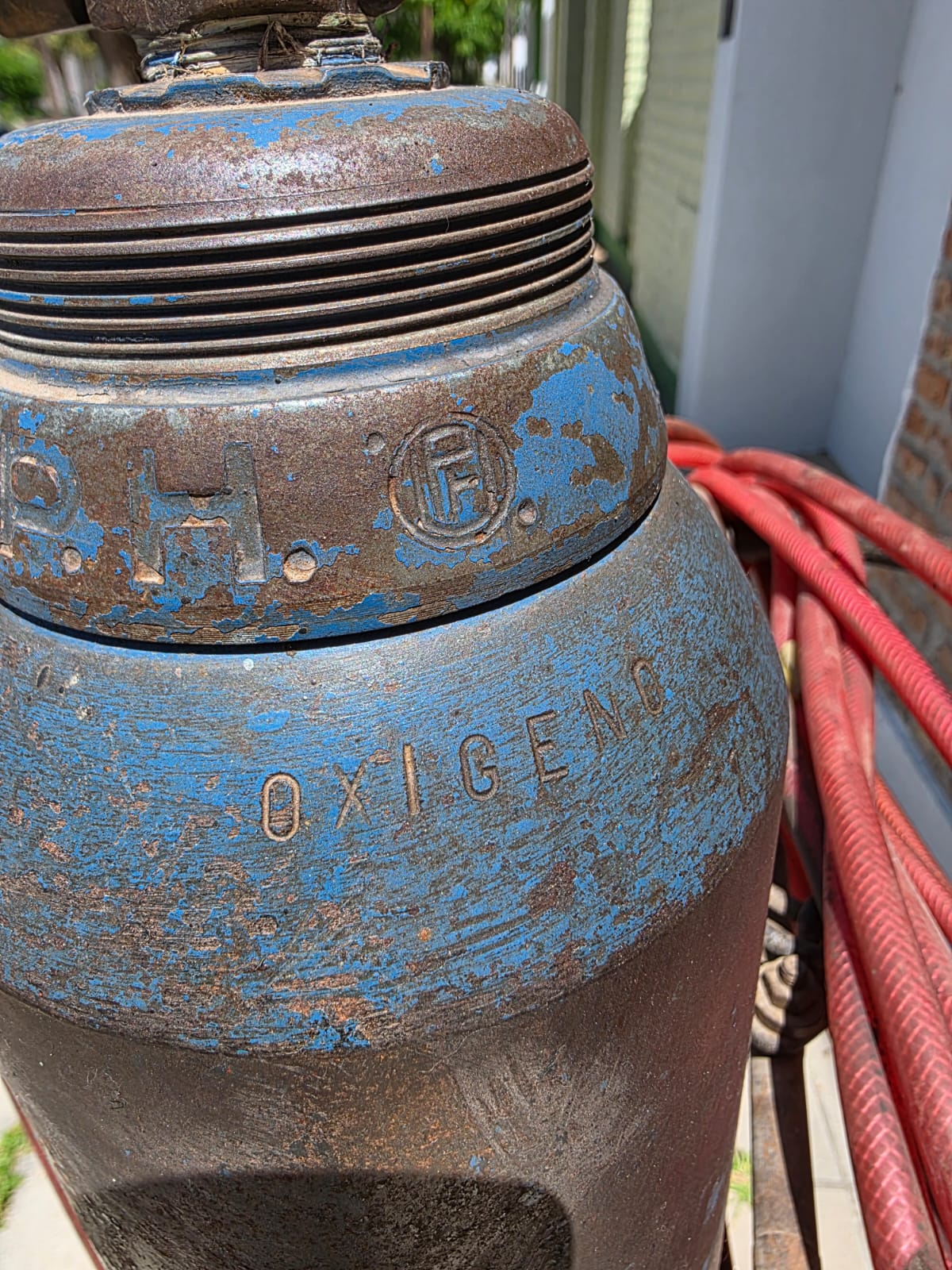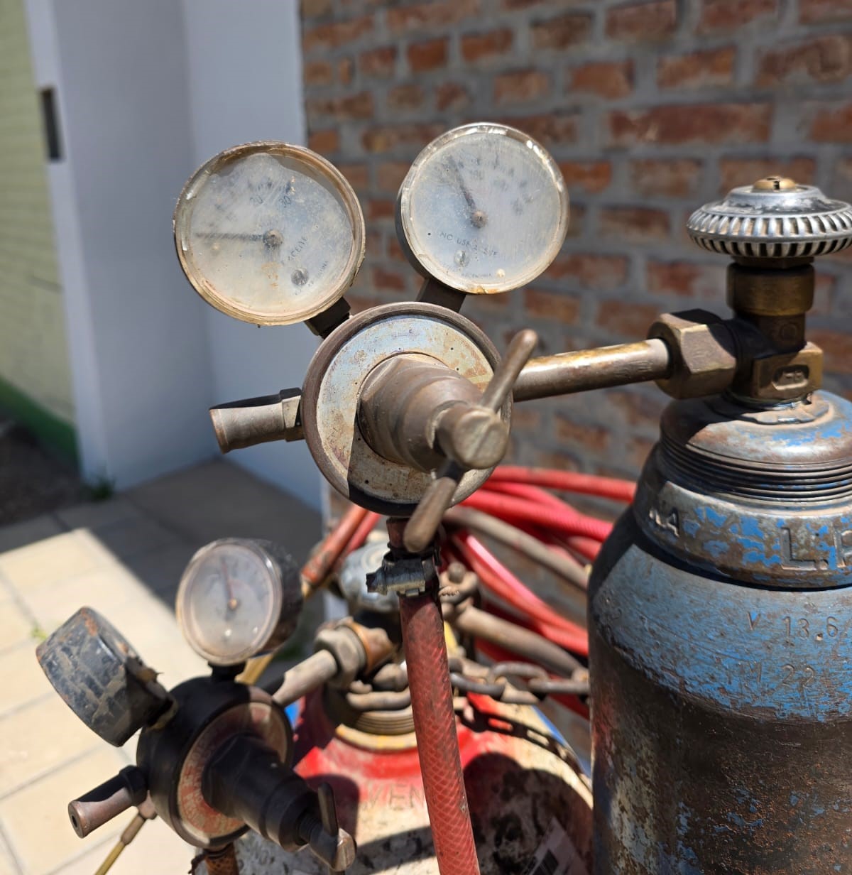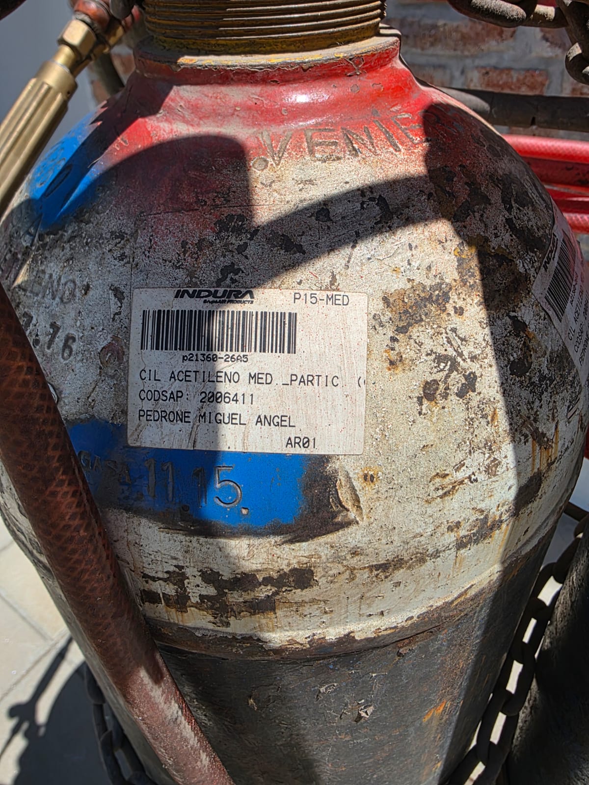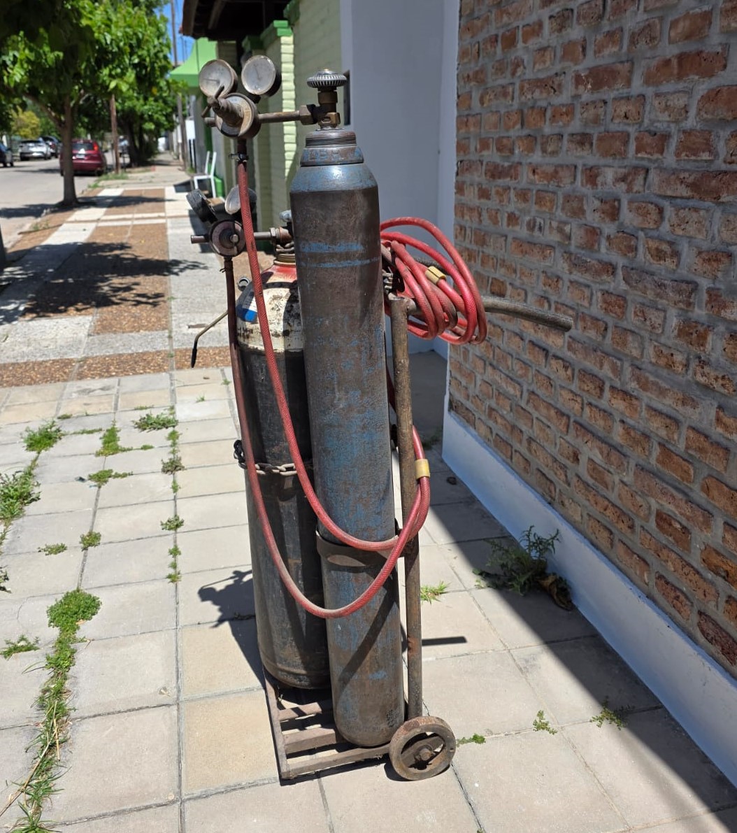 Equipo de autógena compuesto por un tubo de acetileno y un tubo de oxigeno de 2 metro cúbicos y pico. Usado en el estado en que se encuentra.
