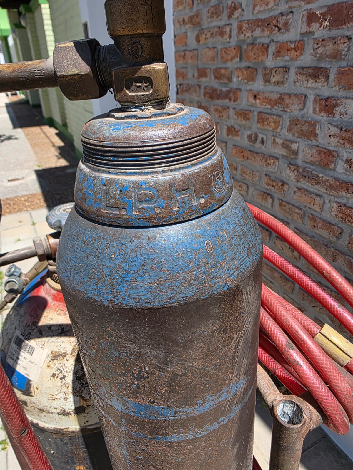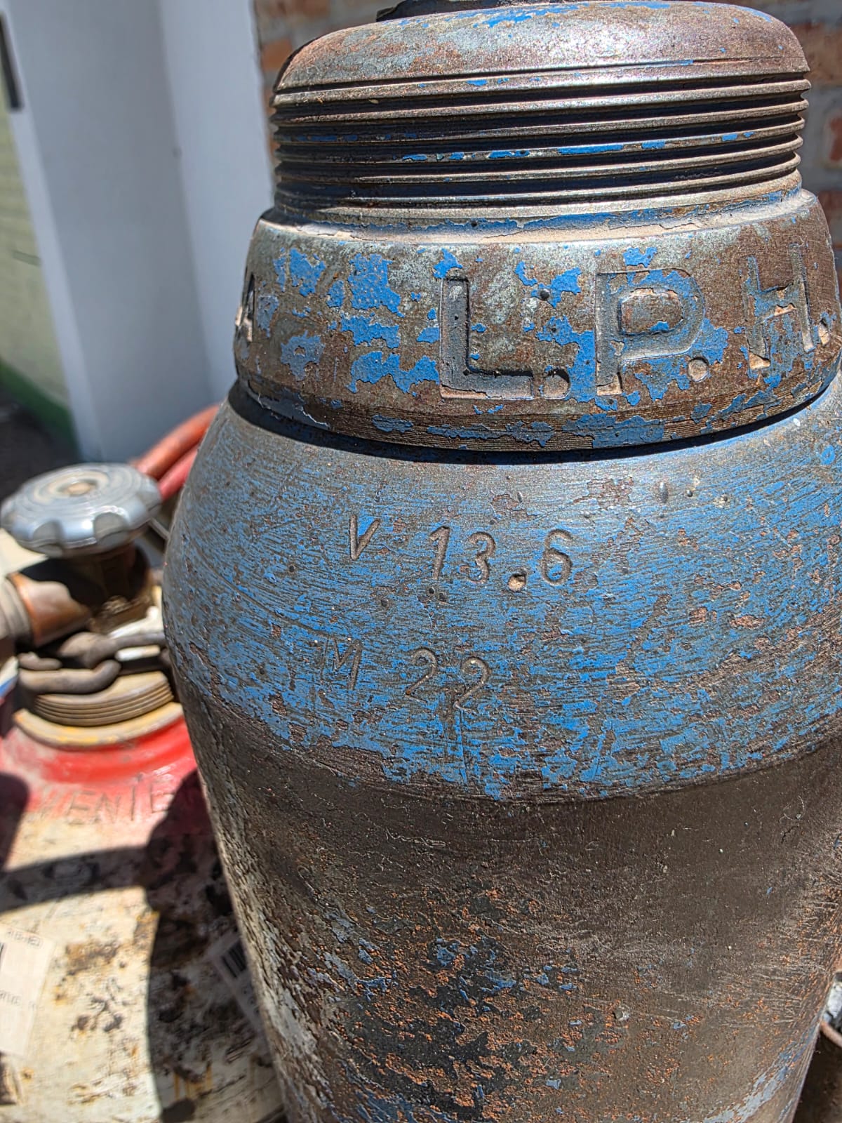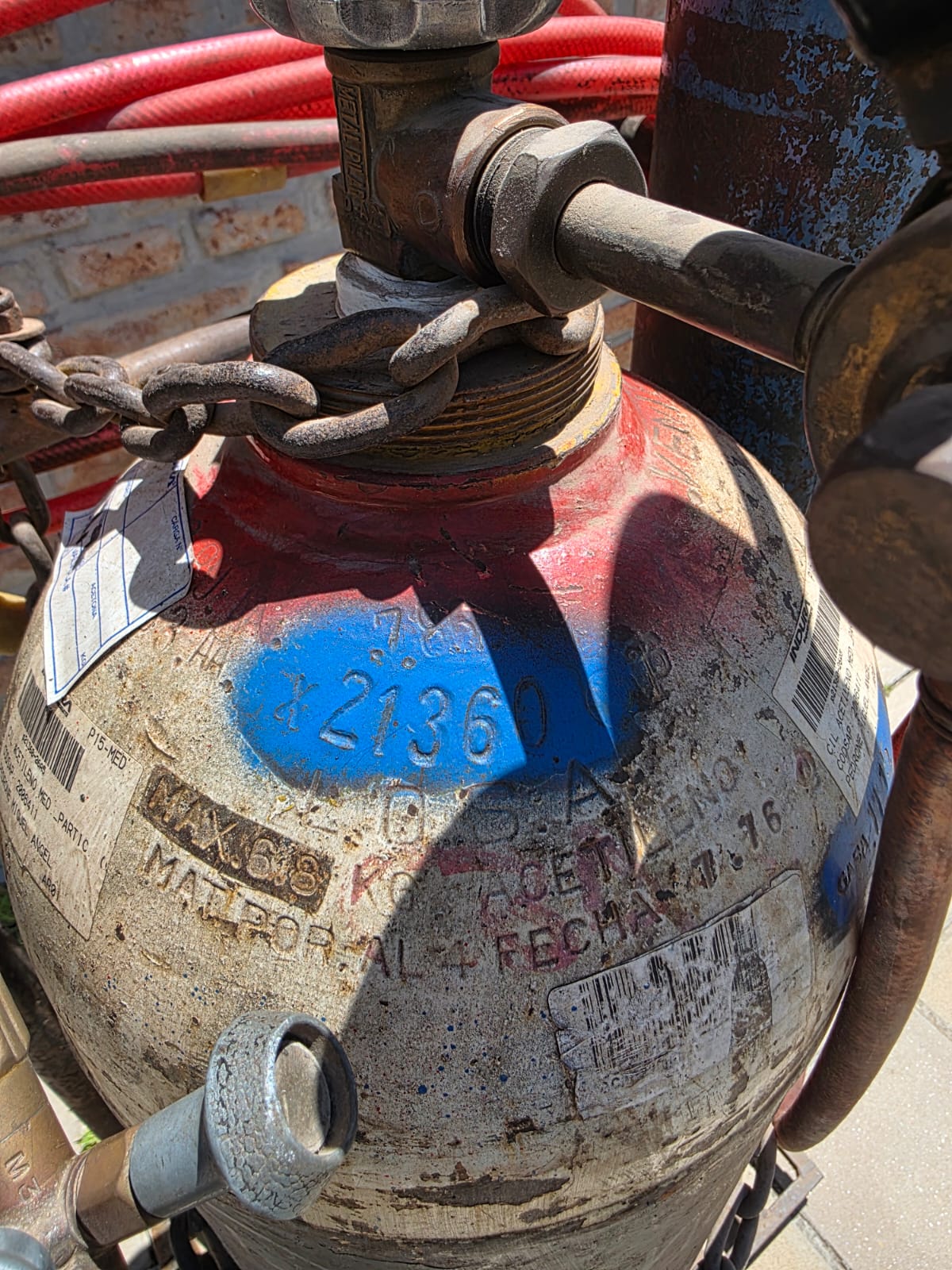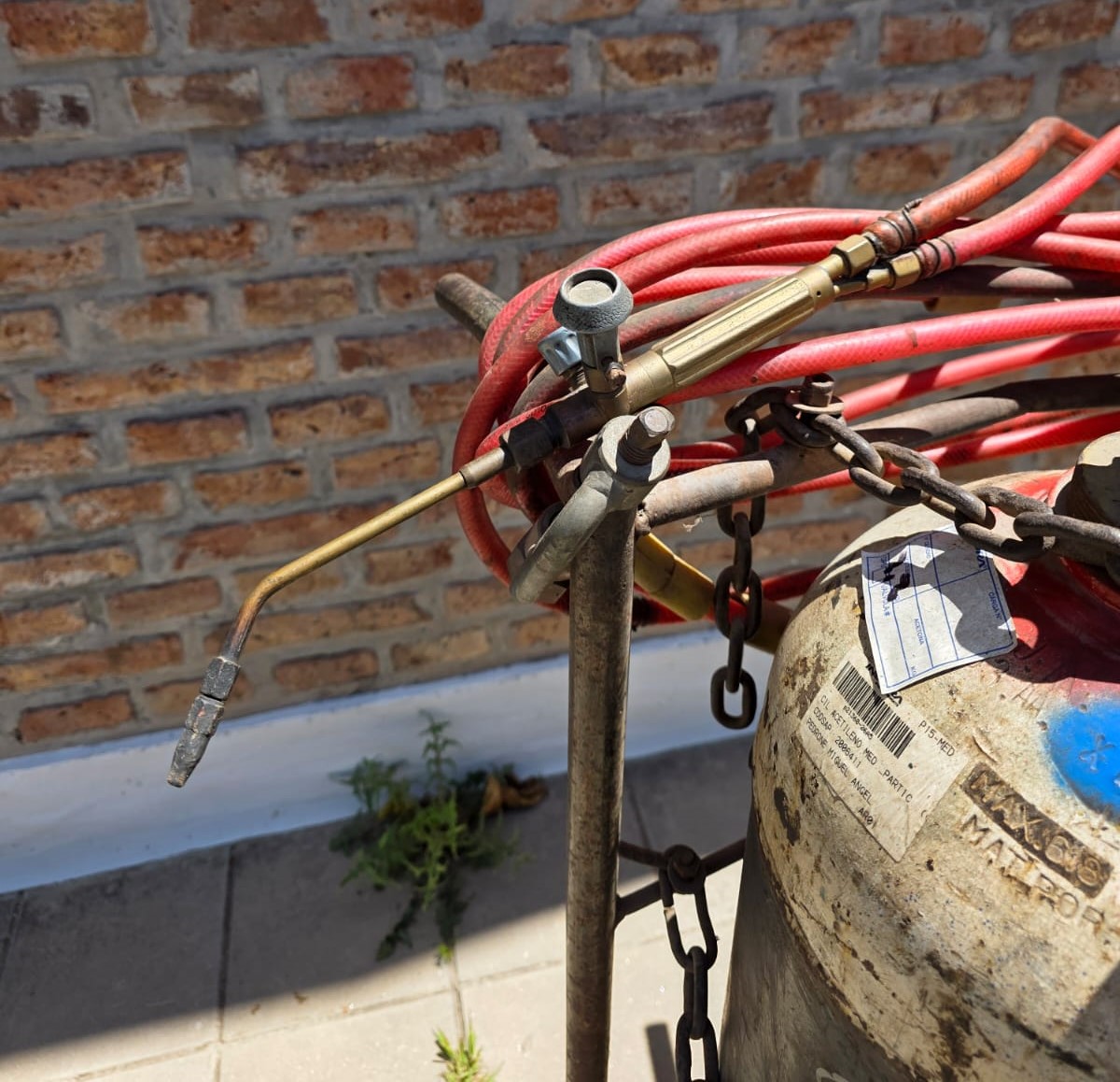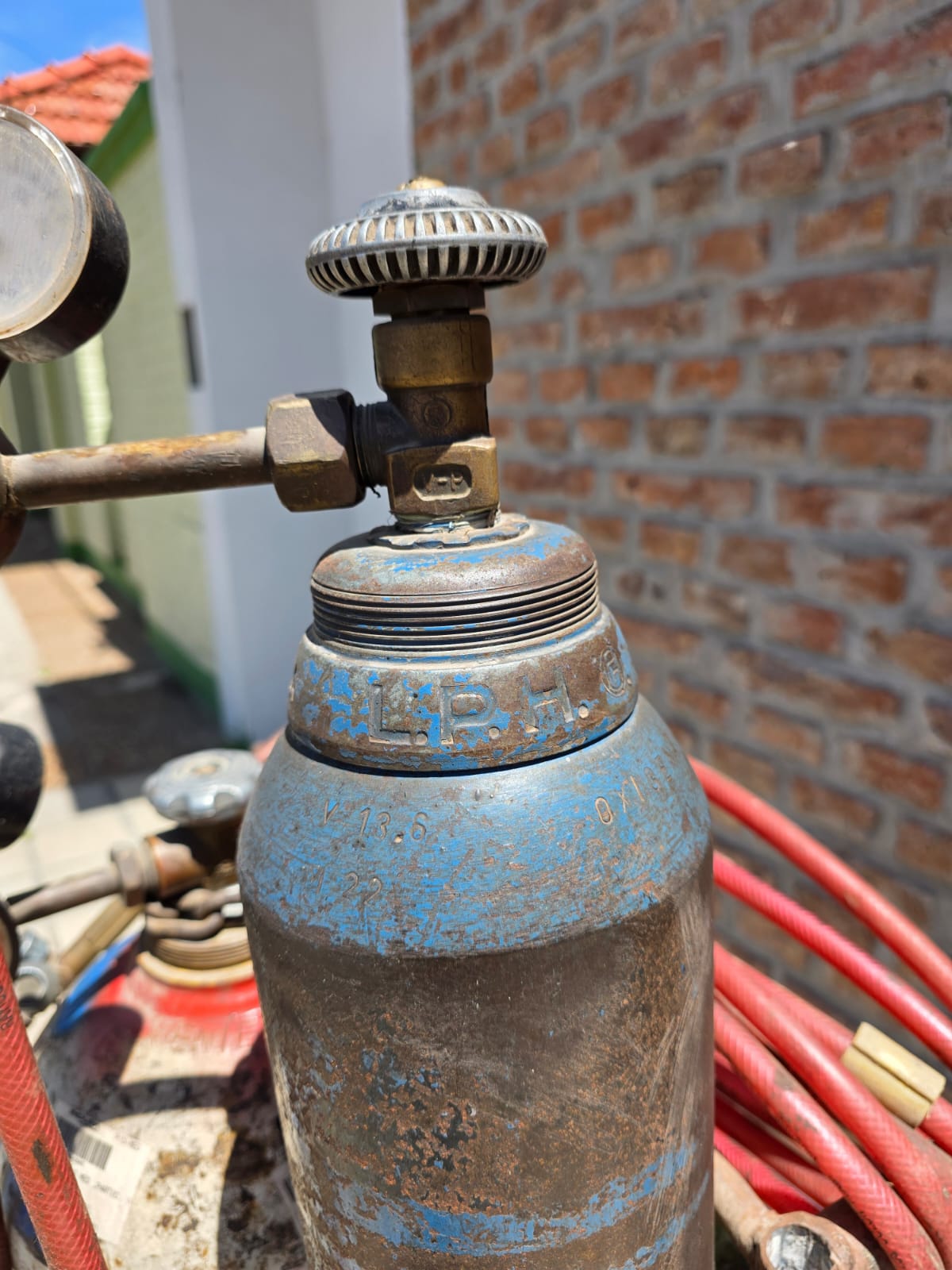 Equipo de autógena compuesto por un tubo de acetileno y un tubo de oxigeno de 2 metro cúbicos y pico. Usado en el estado en que se encuentra.