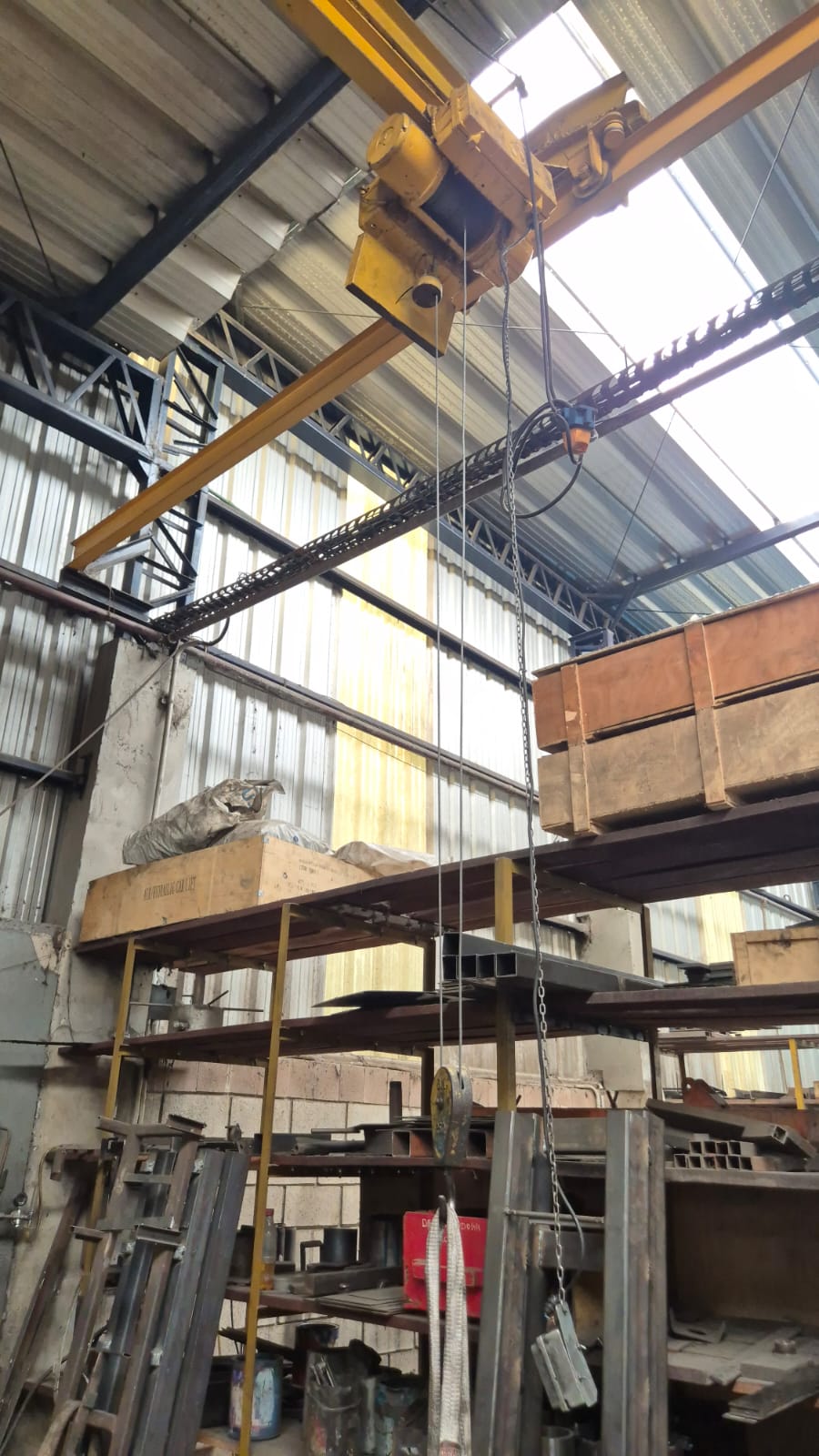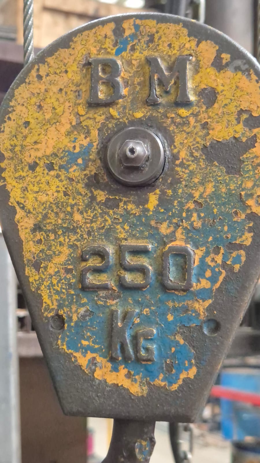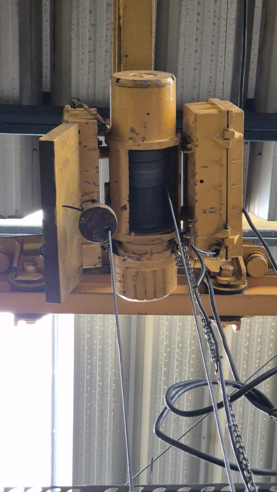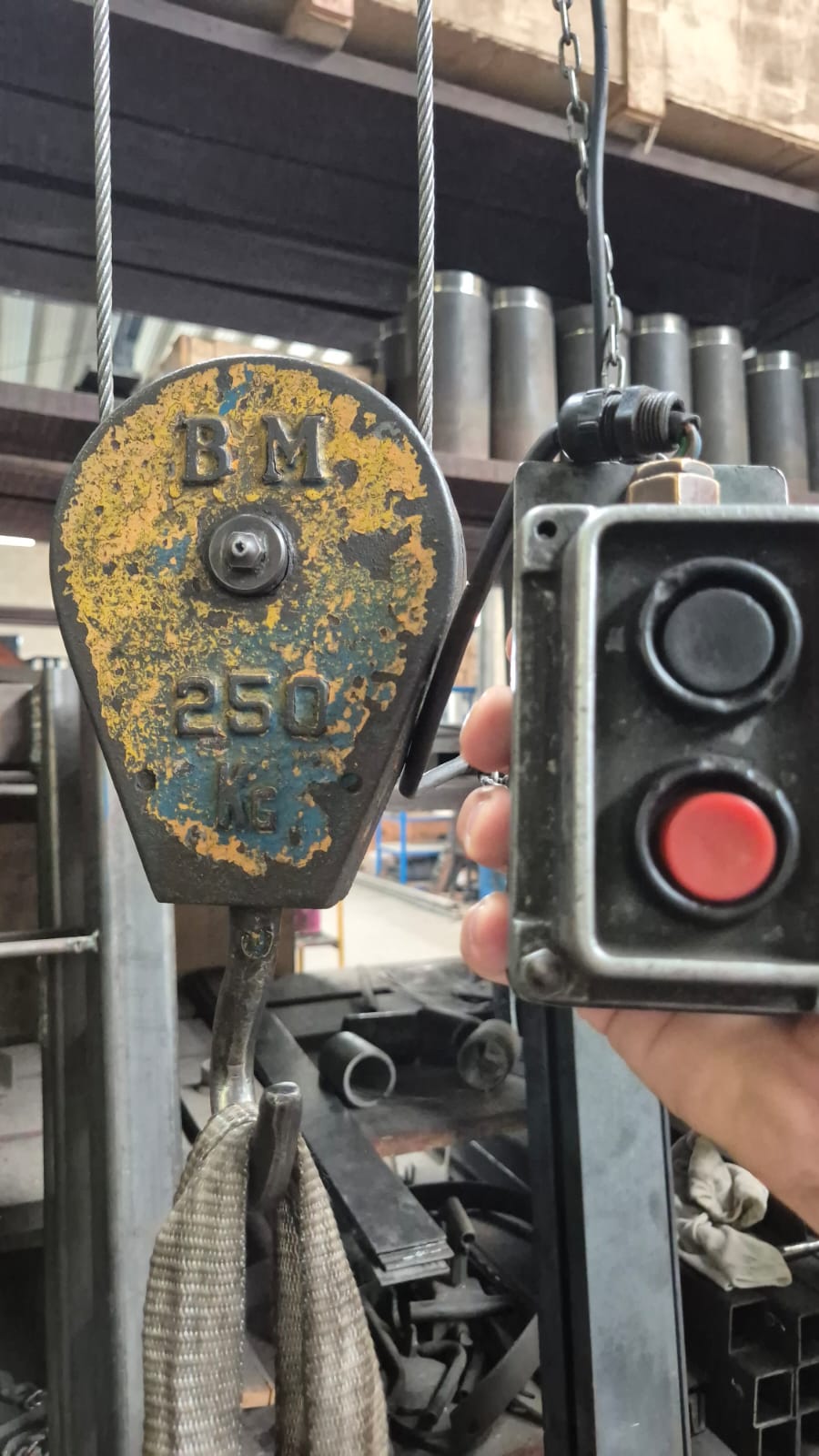Aparejo eléctrico con capacidad de carga de 250kg (color amarillo), en funcionamiento con control. Usado en el estado en que se encuentra.