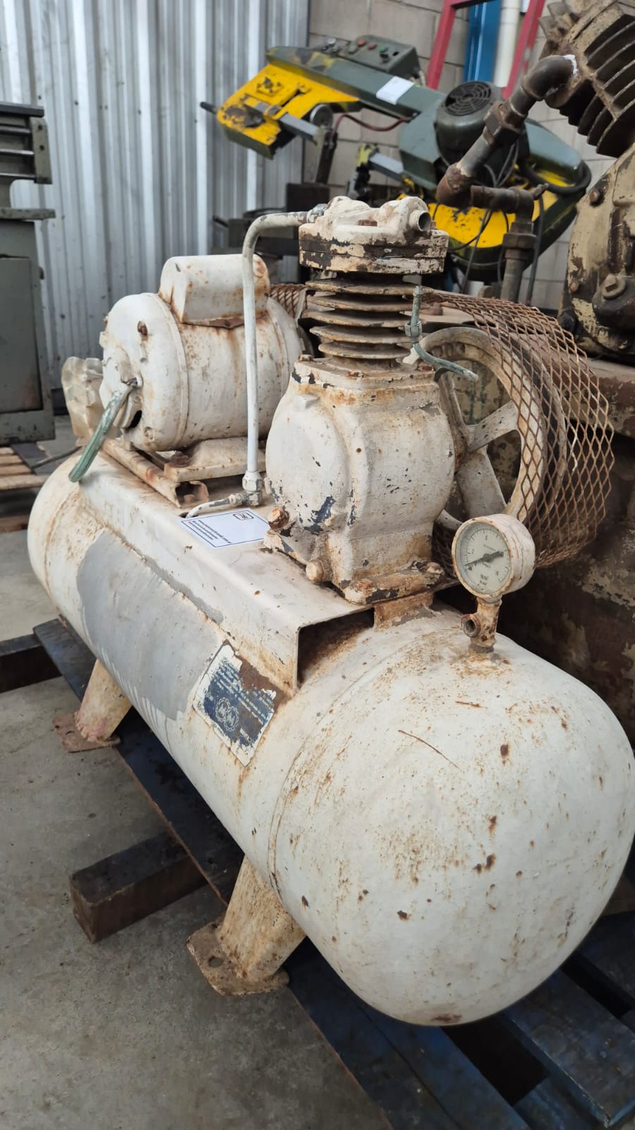 Compresor marca Modenesi, de 90 litros, con motor de 3/4HP monofásico. Usado en el estado en que se encuentra.