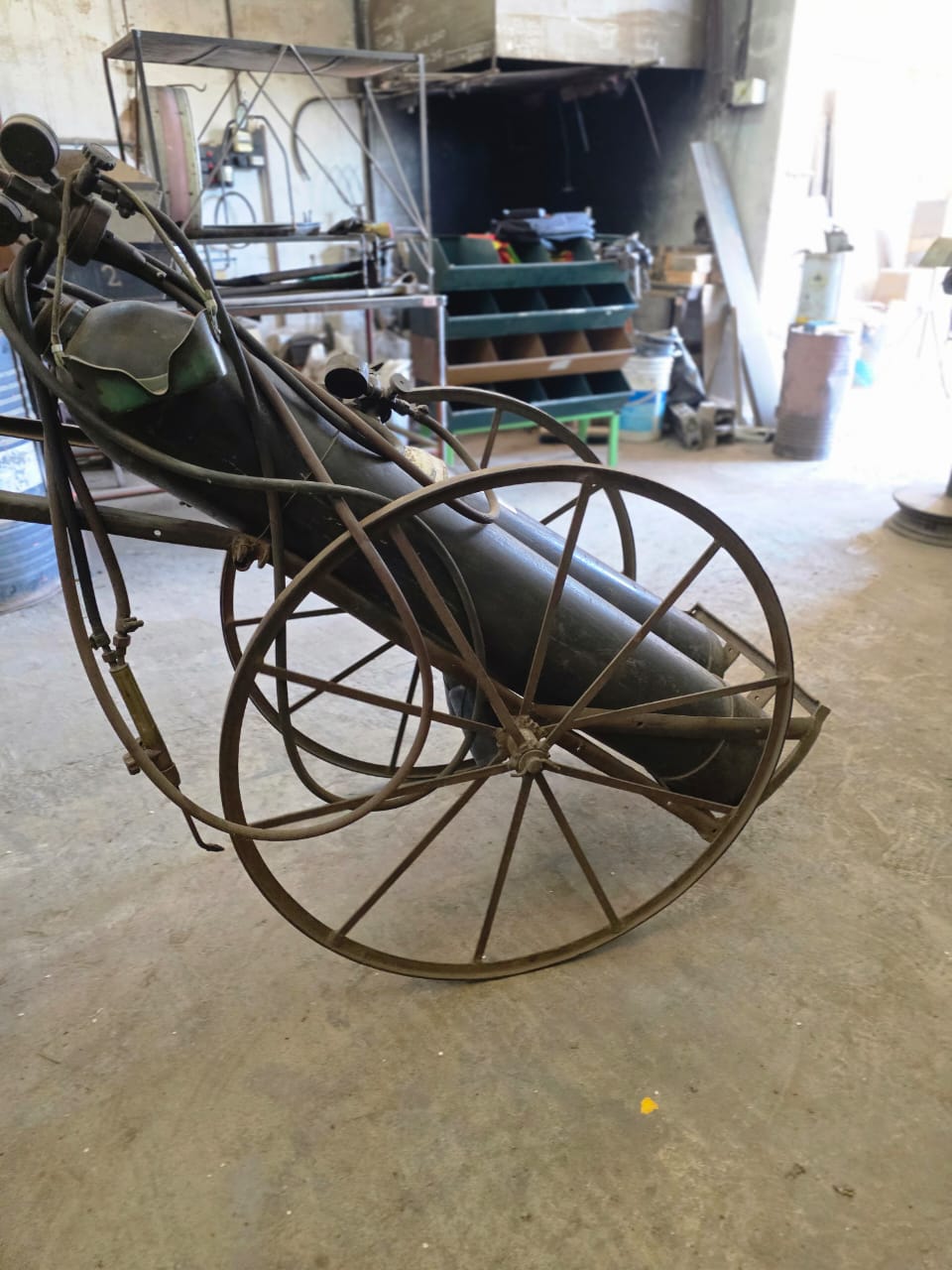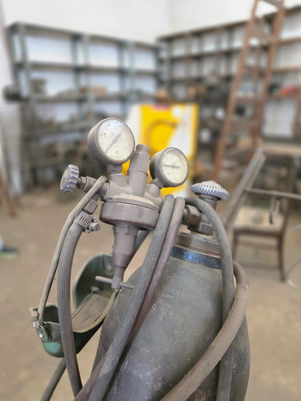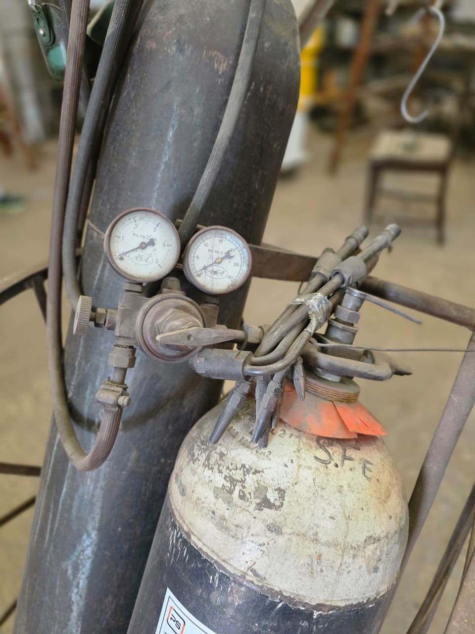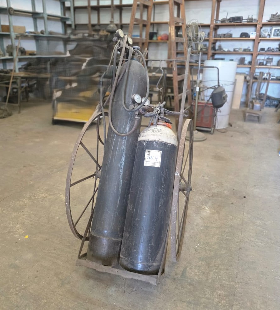 Equipo de autógena con carrito y un tubo de acetileno y un tubo de oxigeno de 6 metros cúbicos, con picos.F1